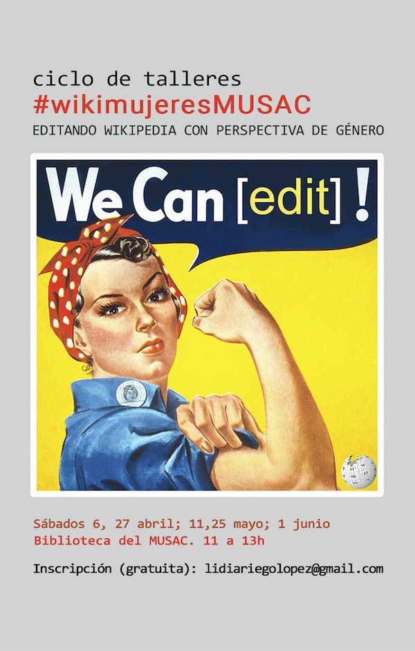 Como indica el MUSAC con estos talleres – cinco talleres durante los sábados de abril, mayo y junio-, se busca aplicar una perspectiva de género al que es el archivo más utilizado a día de hoy por la mayor parte de la población, así como poner en valor a las mujeres como creadoras y el sesgo con el que la información sobre ellas llega (cuando llega) hasta nosotros. Menos del 20% las biografías que contiene la versión en castellano de Wikipedia son mujeres, y lo mismo ocurre con las personas que editan la