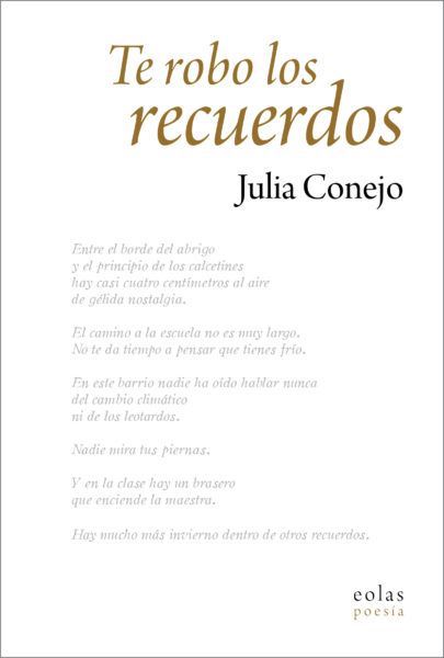 Portada_JUIA CONEJO_Te robo los recuerdos (Eolas, 2018) 13 de mayo de 2019 Return to: FERIA DEL LIBRO LEÓN · 14 Mayo · Cartografía de una trayectoria literaria y mucha, mucha poesíaMáxima resolución (405 × 600) Image navigation Previous Image Siguiente imagen