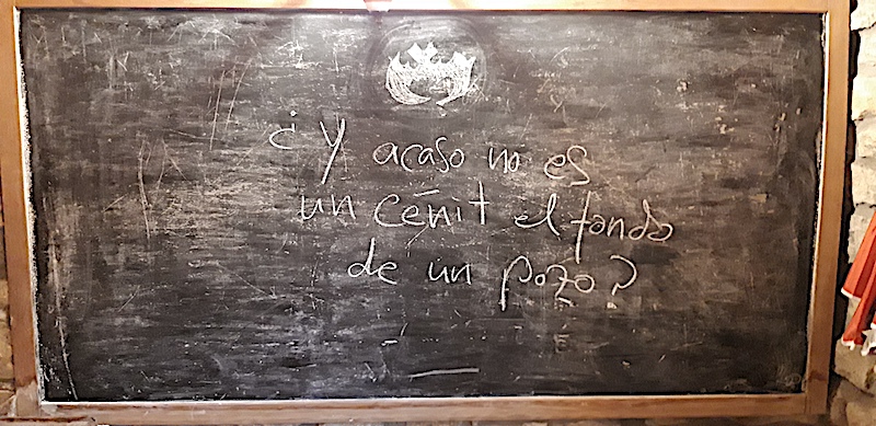 * El escritor leonés (autor de los AULLIDOS DEL PÁJARO que han venido abriendo Tam Tam Press desde los inicios de esta plataforma cultural) continúa con su nueva sección de textos ultrabreves, “LA PIZARRA DE LA ABUBILLA”, en la que se sucederán sus pequeños adagios improvisados sobre dibujos de amigos y artistas de paso, inscritos con tiza sobre una pizarra de escuela republicana encontrada en el teleclub La Abubilla (antaño escuela y mantequería, actualmente reconvertido en centro social y mini galería de arte), en la minúscula aldea leonesa de Paradilla de Gordón (que solo cuenta con tres habitantes, entre ellos “el Pájaro”), tomando unas cañas y brindando por la amistad.