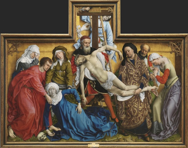 b) Mi fascinación por un cuadro en particular: Descendimiento, de Rogier Van der Weyden, que he podido contemplar tantas veces en El Prado y que es para mí, desde la primera vez que lo vi siendo adolescente, epítome de lo que entiendo como pintura.