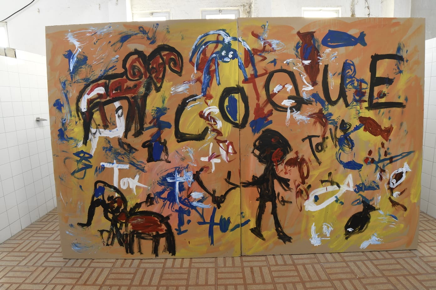 – Se pueden ver ochenta piezas, de pequeño y gran formato. Y todas ellas realizadas sobre cartón, a veces reciclado. Un material pobre, de desecho, muy presente en toda tu producción…