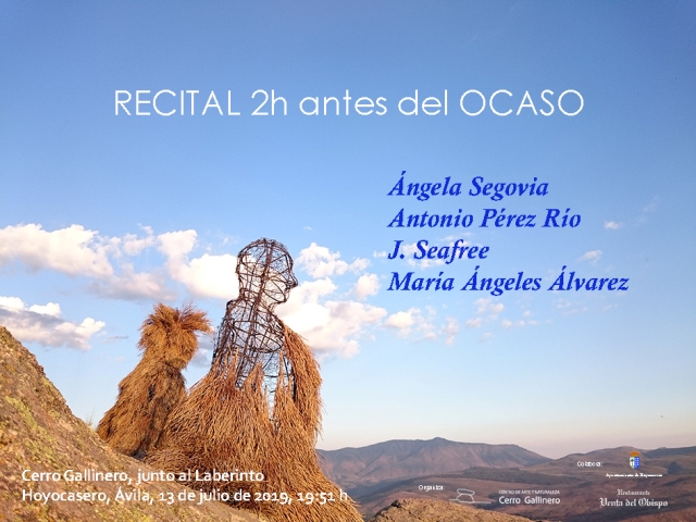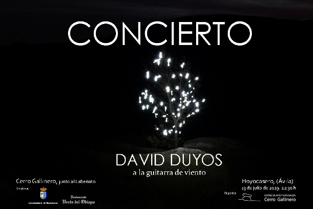 Por cuarto año consecutivo, el Centro de Arte y Naturaleza Cerro Gallinero (Hoyocasero, Ávila), celebra el próximo sábado 13 de julio una nueva cita protagonizada por la palabra y la música. El programa es doble: a la 19:51 horas tendrá lugar el recital ‘2 h antes del Ocaso’, en el que participan los poetas y escritores Ángela Segovia, Antonio Pérez Río, J. Seafree y María Ángeles Álvarez. Y a continuación, a las 21:30 horas, el concierto ‘A la guitarra de viento’ del músico, artista sonoro y lutier David Duyos.