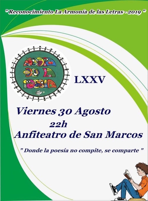Este viernes 30 de agosto, a partir de las 22 horas, arrancará en el anfiteatro de la plaza de San Marcos, en León, una nueva sesión del Ágora de la Poesía, que en este año 2019 ha obtenido el reconocimiento de «La Armonía de las Letras». Versos, solidaridad, chocolate y alegría son algunos de los ingredientes de este encuentro imprevisible que cada último viernes de mes reúne a decenas de personas con ganas de leer y escuchar poemas hasta la medianoche…