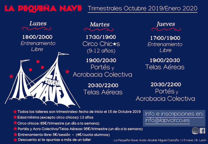 La escuela de circo de León recuerda que están abiertas las inscripciones para el curso 2019/2020 en La Pequeña Nave.