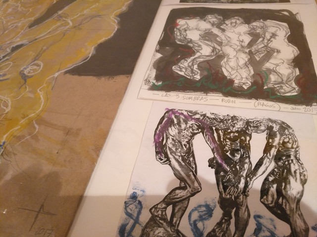 Así vemos como su obra parte de una formación técnica solida, propia e implícita en la carrera de arquitectura y al mismo tiempo bebe como es lógico de las fuentes clásicas tanto de la arquitectura como de la pintura, concretándose a veces, incluso en relecturas un tanto expresivas, distorsionadoras y expresionistas de obras fundamentales de la historia del arte como las emblemáticas obras de El Greco ‘Entierro del conde Orgaz’, de Pablo Rubens ‘Las tres Gracias’ o el ‘Laocoonte’. Por lo tanto estamos ante un creador inmerso en un territorio de reflexión sobre fuentes previas de tipo canónico, hecho que dota e impregna significativamente su obra de una impronta clásica subyacente, a pesar de la sensación que puede producir su pintura en una visión inicial y despreocupada, de ser tensa, caótica, descompuesta, laberíntica y desestructurada.