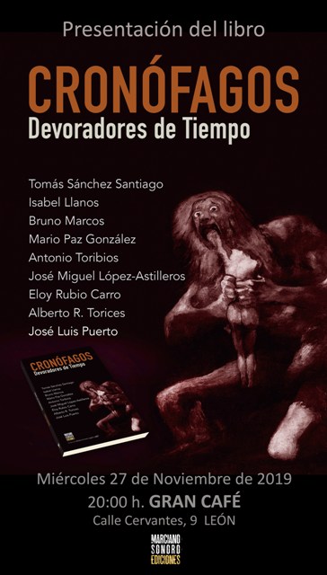 Cartel Presentación Cronófagos 25 de noviembre de 2019 Return to: ‘CRONÓFAGOS’. Veinte relatos sobre el tiempo devoradorMáxima resolución (364 × 640) Image navigation Previous Image Siguiente imagen Cartel Presentación 'Cronófagos'.
