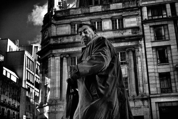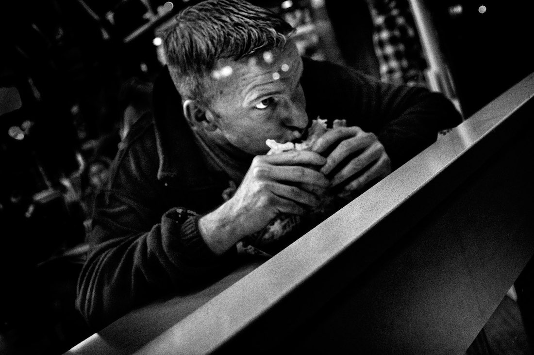 También acompañan la presentación y producción de las fotografías de la muestra unas copias descomunales, impecables en cuanto a técnica y resultado, llenas de matices, majestuosas. Me gusta mucho una frase de Eamonn Doyle que leí en una entrevista: “Cuando pintas tienes el lienzo en blanco, pero cuando fotografías, hay un lienzo repleto de cosas y de lo que se trata es de ir quitándolas”. Es algo que le llevo oyendo a García-Alix desde hace años y que me lo aplico cada vez que fotografío. Si algo sobra, quítalo. Lo que no aporta no tiene razón para estar. Lo difícil es hacer eso realizando fotografía de calle, cuando estás a merced de los acontecimientos y no sabes nunca lo que va a pasar.