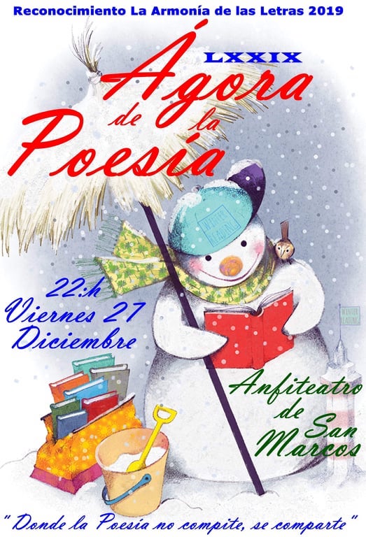 «Si Navidad es ‘nacer’, mucho tiene que ver con la poesía, porque ésta es la forma de la palabra que hace que su significado nazca cada vez que se escribe, cada vez que se escucha, cada vez que se lee. Los versos son imágenes, significados que cambian como los colores y formas de un caleidoscopio. Tal es su acción creativa, su hacer sentir, despertando como el arpa de Bécquer que espera que le digan ‘¡levántate y anda!’ De esta manera la Navidad se prolonga con la palabra al nacer en los sentimientos«, dice el mensaje de este mes de diciembre que envían los organizadores del Ágora.