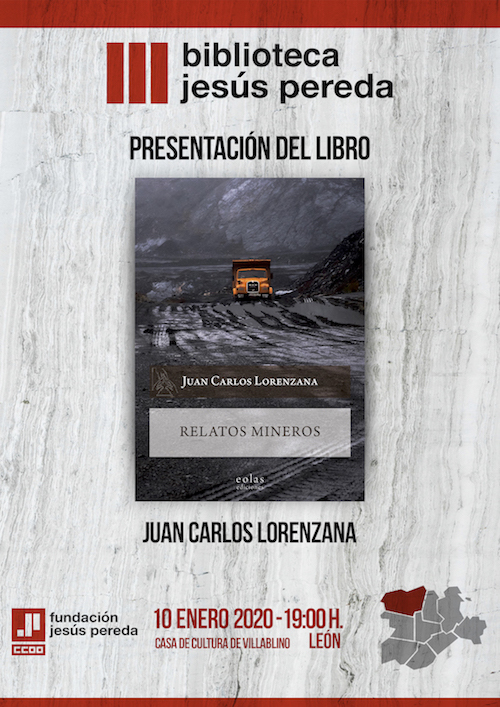 La Fundación Jesús Pereda de CCOO de Castilla y León llevó a cabo a lo largo del pasado año un programa titulado “Biblioteca Jesús Pereda”, que incluyó la presentación de media docena de libros en varias localidades de la comunidad autónoma. Como un eco de toda esa actividad, la fundación lleva ahora a Villablino (León) el libro “Relatos mineros”, escrito por Juan Carlos Lorenzana (‘Zana’) y publicado por Eolas Ediciones. Será el próximo viernes, 10 de enero, a las 19 horas, en la Casa de Cultura de esa localidad minera.