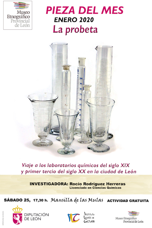 “La probeta. Viaje a los laboratorios químicos del siglo XIX y primer tercio del siglo XX en la ciudad de León”. Así se titula la conferencia que impartirá Rocío Rodríguez Herreras, licenciada en Ciencias Químicas, el sábado, 25 de enero de 2020, a las 17:30 horas, en el Museo Etnográfico Provincial de León, ubicado en la localidad de Mansilla de las Mulas. Actividad gratuita.