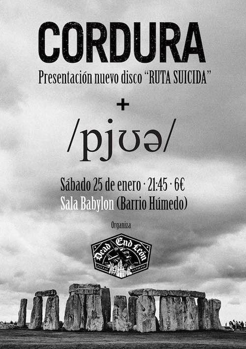 Este sábado 25 de enero, a las 21:45 horas y con entradas a 6 €, la sala Babylon (en el Barrio Húmedo leonés) recibe desde Bilbao a Cordura, banda difícil de encasillar pero que se ha convertido en un referente dentro de la escena del rock alternativo. Estarán acompañados por Pure, una de las bandas leonesas de mayor calibre. La velada está organizada por el colectivo cultural Dead End León.