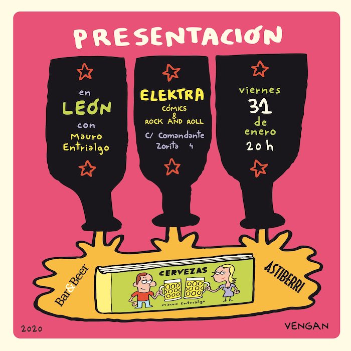 Este viernes 31 de enero, a las 20:00 horas en Elektra Cómics (León), el humorista gráfico Mauro Entrialgo presentará su nuevo álbum recopilatorio de viñetas titulado “Cervezas» (Astiberri Ediciones). Entrada libre.