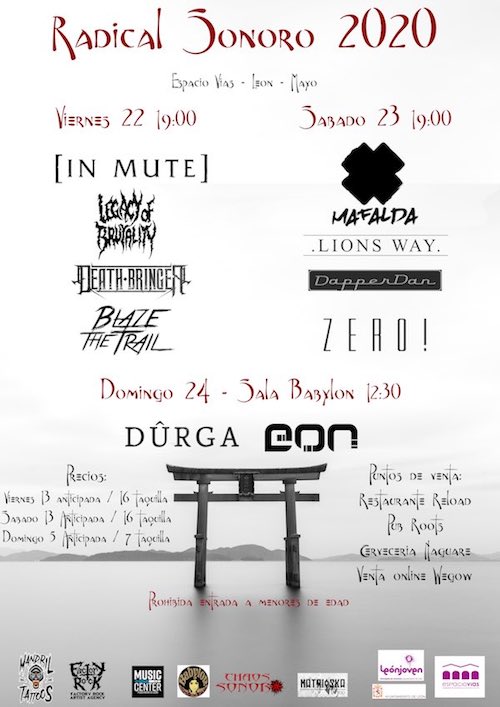 Dicen que en la parte norte de la Península Ibérica se cuecen muy bien los festivales de Música Extrema, ejemplos son Resurrection Fest en Viveiro, Otero Brutal Fest en Oviedo o Z! Live Rock Fest en Zamora. La ciudad de León, de forma modesta y pujante, también tiene el suyo, que este año llega a su quinta edición: Radical Sonoro, que anticipa ya un cartel espectacular para el próximo mes de mayo. La cita será el fin de semana que abarca las fechas del viernes 22 al domingo 24 de mayo, en el local de Espacio Vías y en la Sala Babylon de León.