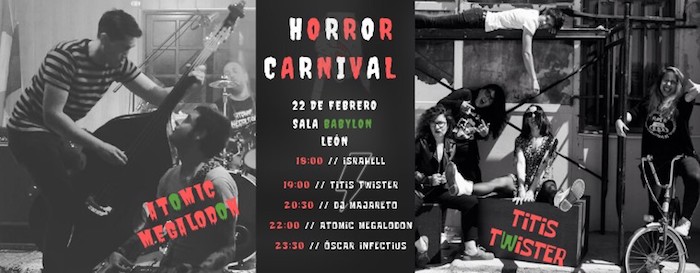 Con la intención de convertirse en una cita anual, el sábado 22 de febrero se celebrará en la sala leonesa Babylon la primera edición del Horror Carnival Fest. Será un evento centrado en los sonidos de los años 50 y su evolución, donde rock&roll, carnaval y serie B se darán la mano durante doce intensas horas y que contará con actuaciones en directo –Titis Twister y Atomic Megalodon–, algunos de los más selectos pinchas del circuito, disfraces y, en futuras ediciones, incluso cine.