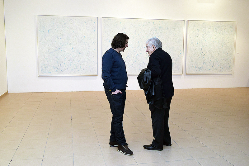Entiendo, pues, que al autor de La pobreza (Galaxia Guttemberg, 2020), segunda entrega de su autobiografía, se haya sentido reconfortado dejando que la mirada se le adentrase en estos lienzos, territorios de lo invisible pero que está. Elogió la autoexigencia con la que han sido plasmados, el ejercicio de búsqueda que conllevan, el logro conseguido, que además es camino abierto, que ya quedó dicho que en arte no hay finales.