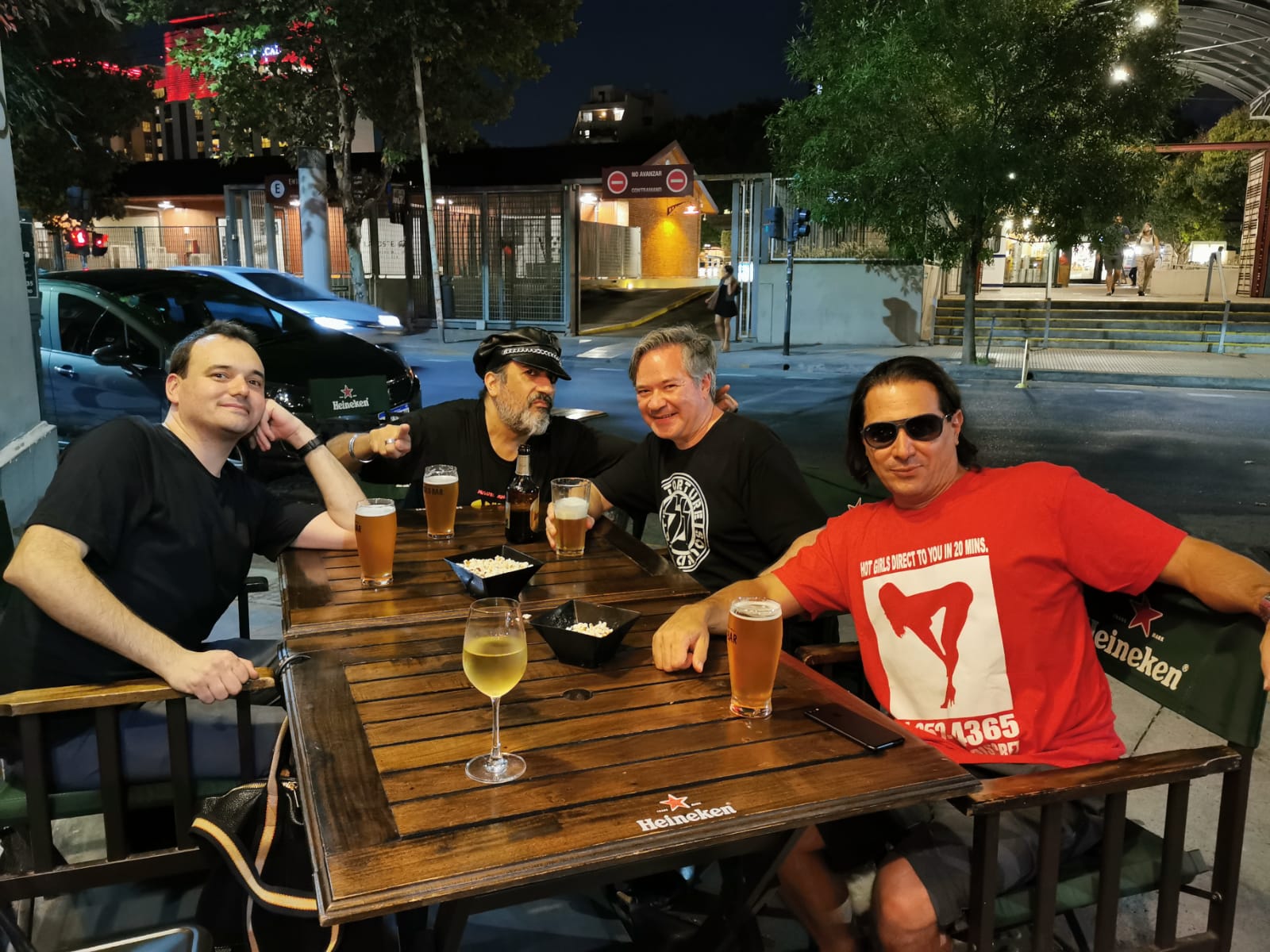 La cita ha sido totalmente fortuita y totalmente inesperada, ya que el dibujante leonés está en Argentina de vacaciones. “Todo surge a raíz de subir una foto de PinkHouse y Marcelo Pocavida en facebook. Se enteraron de que estaba aquí y me contactaron. No estaba previsto!!!”, asegura. Para quién no lo sepa Marcelo Pocavida (Marcelo Óscar Araneo), fan desde hace años de Miguel Ángel Martín, es un mítico del postpunk argentino, performer, guionista y actor de películas de terror de serie B. Y Pink House es un grupo de ‘shockeante’ electrónico con guiños a la cultura under bizarra, integrado por Mauricio Tomasetti y Hernan Chinaski y en el que esta leyenda del punk pone la voz.
