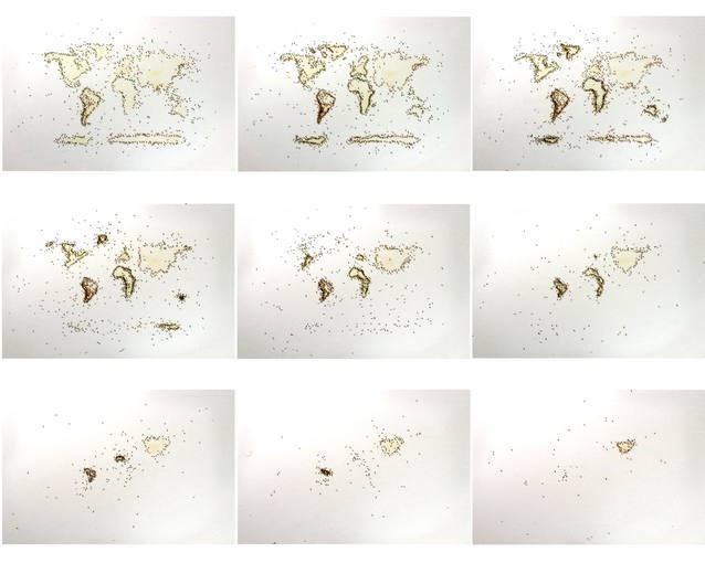 Quizá la obra más conocida de la artista brasileña sea Contingent (2008), un vídeo en el que crea un mapa del mundo con miel y suelta cientos de hormigas que se mueven de forma frenética sobre él, consumiendo la miel y transformado los límites del mapa, de forma constante y caótica. El vídeo se convierte, según señala Rivane Neuenschwander, en “la visión deconstruida de los muchos movimientos accidentales, tanto naturales como artificiales que han modelado, y continúan formando, los contornos de nuestro mundo”. El resultado es inquietante y la progresiva desaparición de los contornos del mapa resulta una metáfora del acelerado proceso de globalización y el consumo desaforado de recursos, también refiere a la permeabilidad y el constante movimiento de las migraciones y la inestabilidad de límites e identidades.