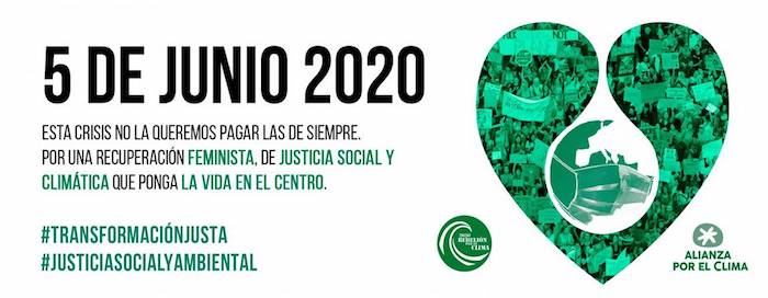 Aunque en algunos lugares se han distintas acciones contando con los debidos protocolos, debido a la situación sanitaria actual y con el interés de garantizar el mínimo riesgo, así como de evitar una imagen de aglomeración que sería contraria al necesario ejemplo en estos momentos, una de las propuestas es que el próximo viernes 5 de Junio, Día Mundial del Medio Ambiente, pintemos corazones verdes en nuestras caras, en nuestras camisetas, en carteles que sacaremos a nuestros balcones…. para reivindicar una salida justa, social y ambientalmente, de la crisis sanitaria, y reivindicar Servicios Públicos para todos y todas.