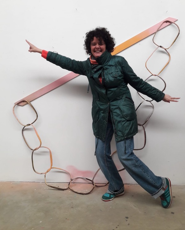 El trabajo de Ana H. del Amo (Cáceres 1977) no es ni pintura ni escultura y es ambas cosas a la vez, ya que se encuentra en ese territorio fronterizo donde el color, la materia y la forma dan lugar a unas piezas en las que la escultura se convierte en dibujo y este, a fuerza de reflexionar sobre la corporeidad de los materiales, toma carácter escultórico. Ella huye de encasillamientos: “Me gusta la libertad y por lo tanto no quiero definirme ni como pintora ni como escultora, trabajo con libertad sobre los materiales y voy a seguir moviéndome y creando de esta manera y sin etiquetas”. Sus obras se mueven entre la abstracción y la geometría, una geometría más intuitiva que matemática.