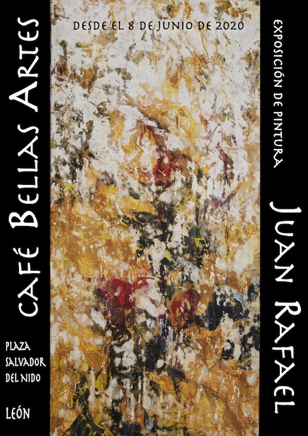 El artista leonés Juan Rafael muestra desde este lunes, 8 de junio, un total de once cuadros de pequeño y medio formato en el café Bellas Artes, ubicado en la recoleta placita de Salvador del Nido, a dos pasos de la catedral. Algunas de las obras expuestas, como la que aparece en el cartel, han sido realizadas durante los últimos dos meses y medio de confinamiento obligado para hacer frente a la pandemia del coronavirus.