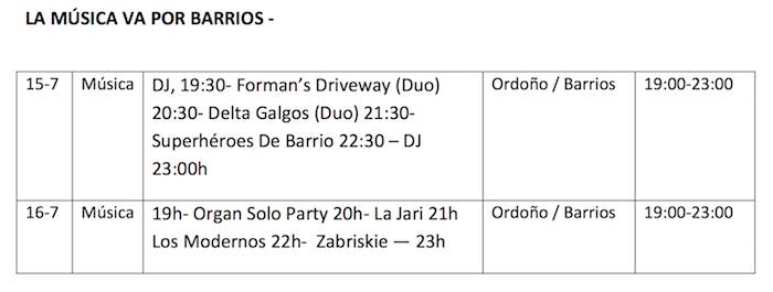 Se celebrará los días 15 y 16 de julio de 19.00 a 23.00 horas y actuarán: Delta Galgos, Forman’s Driveway, Superhéroes de Barrio, Organ Solo Party, La Jari, Los Modernos y Zabriskie.