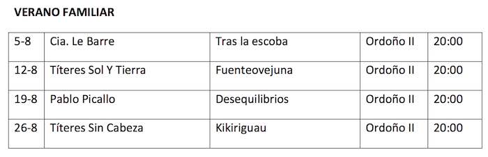 Una propuesta para el público infantil y familiar todos los miércoles de agosto compuesta por espectáculos de títeres y clown que se llevará a cabo en la avenida Ordoño II, a partir de las 20.00 horas.
