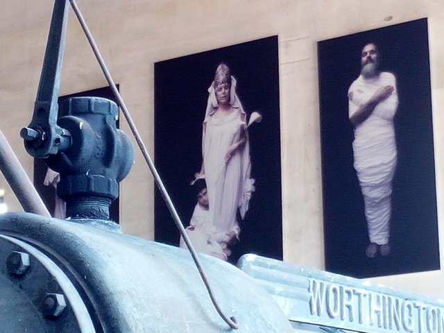 En la sala de los compresores interviene el colectivo Vírgenes Paganas que presenta una instalación escenográfica con título’ Pavana de Estampas, clara referencia a la aportación musical. El colectivo está integrado por Carlos Luxor, músico y artista plástico; Fran de Gonari, diseñador de vestuarios escénicos y artista plástico; Carmen Coque, fotógrafa; y marcGreenBasse, también fotógrafo; en la propuesta se cuenta con la colaboración especial de Ángel Iznaola, tenor y tañedor de viola da gamba.