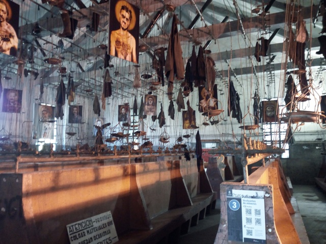 En una sala de los vestuarios se ubica una instalación fotográfica de Pablo García, en este caso se reutilizan piezas de la serie ‘Desideratum’ creada en 2010 y parte de ella presentada en el DA2 de Salamanca, proyecto que en la actualidad se mantiene activo, con varias intervenciones públicas en Omaña y Santa Lucia de Gordón. Pablo utiliza la apropiación de imágenes de diferentes ámbitos y las transforma y modifica por medio de tratamientos informáticos, generando un mundo de personajes irreales, inexistente, singulares y especiales (exceptuando el caso de Canga un ex minero de Ciñera) muy próximos a los diferentes territorios de la marginalidad social y que funcionan como prototipos o arquetipos de ella. Un mundo surreal con cierta carga mágica (por el halo de luz que envuelve sus cabezas en referencia alo espiritual, incluso religioso) que nos recuerda en cierto sentido ese amplio, diverso y complejo mundo de los desheredados sociales. Una fotografía con un tratamiento intensamente barroco y descriptivo que recuerda las pinturas del gran maestro Rembrandt. Lo real y lo falso se unen para recrear una nueva realidad. Las imágenes flotan en el espacio distribuidas a diferentes alturas entre las cuerdas de colgar. Estas impactantes imágenes parecen rememorar los personajes, figuras y espíritus de aquellos trabajadores mineros que tantas veces se cambiaron en estas instalaciones.