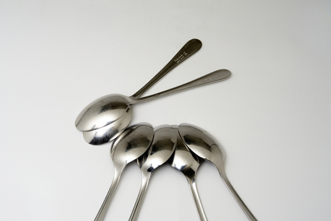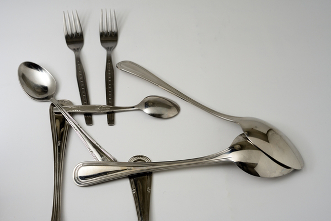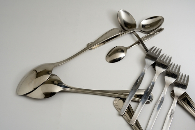 Las cucharas se agrupan en reuniones clandestinas. Pronto se les unen los tenedores y comienza la fiesta. Aquelarre de formas salvajes. Bestias liberadas campan a sus anchas por las selvas oníricas. Safari inoxidable de frío metal.