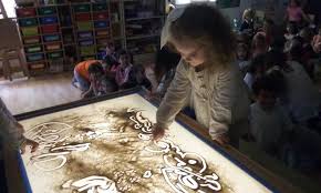 Es un espectáculo visual que fusiona varias técnicas (sombras chinas, cómic, animación,..) para contarnos historias a través de las imágenes que Marcos Escudero dibuja con arena sobre el cristal de una caja de luz. Una cámara capta la sucesión de dibujos para proyectarlos en una pantalla de la que el público no puede apartar la mirada, prendida en los movimientos y cambios mágicos que transforman los dibujos. Esta fusión de técnicas es conocida como “sandpainting” o “sanddrawing”. Es una técnica de ilustración con arena en una pantalla formada por un cristal translúcido. Este vidrio, colocado en forma de mesa, se ilumina debajo y ¡ya tenemos la pantalla lista para tirar arena encima y hacer los dibujos!