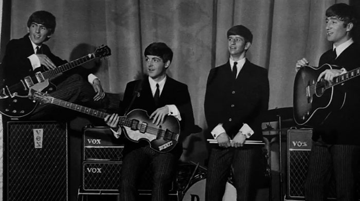 Igualmente el conjunto con que se presentaban en vivo los Beatles en sus primeros años. Trajes de chaqueta ceñidos (a medida), de color negro, corbata estrecha, botines y corte de pelo a tazón. También lucieron un uniforme parecido, aunque gris, con chaqueta sin cuello y tan cerrada que apenas dejaba ver la corbata. Seguramente influyeron en la moda de la ropa de los años sesenta…, igual que en la música y en tantas otras cosas.
