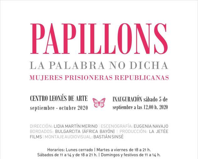 ‘PAPILLONS. La palabra no dicha’ es el título de la exposición que este sábado 5 de septiembre inaugura el Centro Leonés de Arte. Una muestra que recuerda la dura situación que padecieron las mujeres republicanas en las cárceles franquistas. La realización ha corrido a cargo de la segoviana Lidia Martínez Merino y la leonesa Eugenia Navajo ha diseñado la escenografía. La presentación será a las 12:00 horas en el patio del CLA.