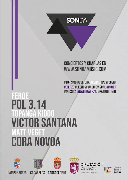 SONDA Music aúna cultura, entorno natural y compromiso social y medioambiental en un formato de streaming audiovisual, que mostrará, desde 6 localizaciones singulares de la zona de El Bierzo, los shows de 6 artistas nacionales y locales y 3 charlas con 12 expertos en música, género, arte, patrimonio, gastronomía y turismo. Los artistas nacionales Cora Novoa (Shesaid.so), Víctor Santana (Band Trío) y Pol 3.14, acompañados de los artistas locales Feroe, Topanga Kiddo y Matt Veget protagonizarán los streamings musicales.