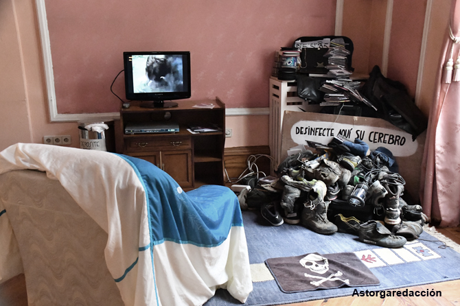 El 11 de septiembre se inauguraba en el Casino de Astorga, una revulsiva muestra de Mike Astor titulada ‘Alegría, ciclogénesis creativa’. Se trata de una exposición viva, que crece hasta llegar al clímax (18 de septiembre) para, a partir de ahí, irse desmoronando (o desmontando) paulatinamente hasta su total desaparición el próximo día 30 de este mes. El poeta y profesor Eloy Rubio Carro visita la exposición en compañía del artista y nos la cuenta…