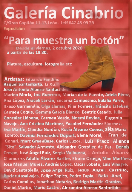 Bajo el título ‘Para muestra un BOTóN’ la galería leonesa Cinabrio acoge una de las exposiciones colectivas más amplias de las que se han realizado hasta ahora en la ciudad. Comisariada por el artista y docente Carlos Cuenllas, reúne obra de 60 artistas, 30 mujeres y 30 hombres. Y cada uno de ellos expone una obra propia, elegida por ellos mismos, con la que se sienten representados.