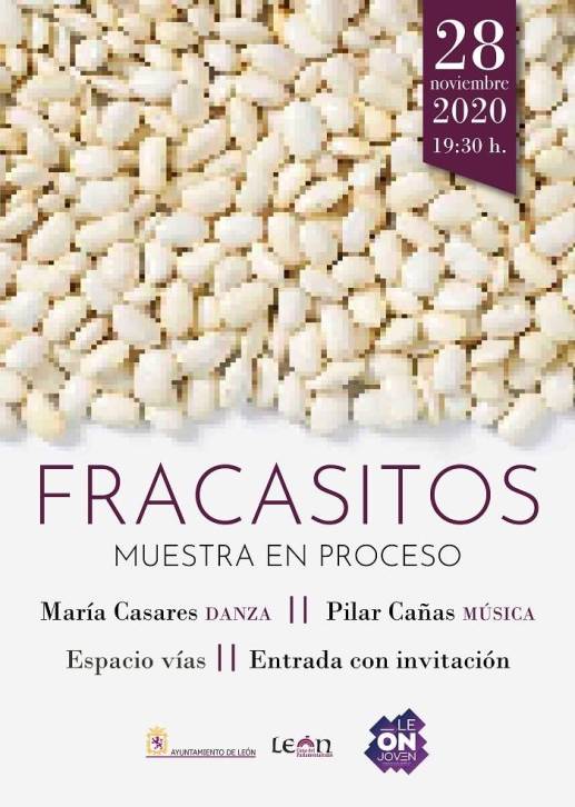«Fracasitos», improvisación estructurada de música (con Pilar Cañas) y danza (con María Casares), se presenta en proceso este sábado, 28 de noviembre, en Espacio Vías (León) a las 19:30 horas. La pieza, seleccionada para formar parte de la programación cultural de la Concejalía de Juventud, Cul’20, explora el “fracaso” desde la práctica artística.