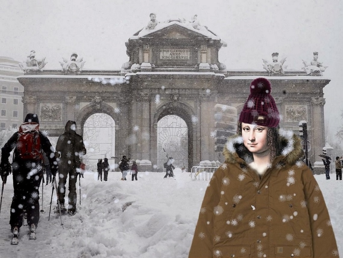 Nunca se habían visto así a los personajes de las obras pictóricas más conocidas y destacadas de la Historia del Arte, albergadas en distintos museos del mundo. Los alumnos de Plástica de los Maristas los han sacado de sus cuadros y los han preparado para disfrutar de la nieve en distintos enclaves “Nos los podemos encontrar no solo por Madrid, esquiando por Cibeles o paseando por la Puerta de Alcalá, sino también en muchas otras ciudades y provincias, como en, Segovia, Zaragoza, Santiago de Compostela, León Toledo, etc”, explican Jésica Campelo y Carlos Cuenllas, los profesores que ha promovido el proyecto. Y recuerdan que este trabajo, cuyas fotografías se están agrupando bajo el hashtag #delmuseoalanieve “surgió como un pequeño homenaje a los dos operarios de quitanieves que sufrieron el fatal accidente, cuando se vieron sorprendidos por un alud, en el Puerto de San Isidro”.