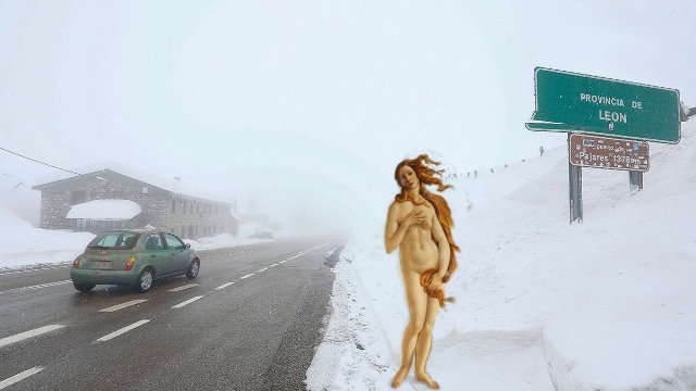 El nacimiento de Venus, pintado por Botticelli, está en la carretera de el Puerto de Pajares. Es un trabajo hecho por Rocío 18 de enero de 2021 Return to: Personajes de grandes obras de arte salen del lienzo para pasear por la nieveMáxima resolución (640 × 360) Image navigation Previous Image Siguiente imagen