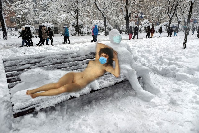 La maja desnuda, pintada por Goya, descansa en un banco. Trabajo hecho por David 18 de enero de 2021 Return to: Personajes de grandes obras de arte salen del lienzo para pasear por la nieveMáxima resolución (640 × 427) Image navigation Previous Image Siguiente imagen 'La Maja desnuda' de Goya.