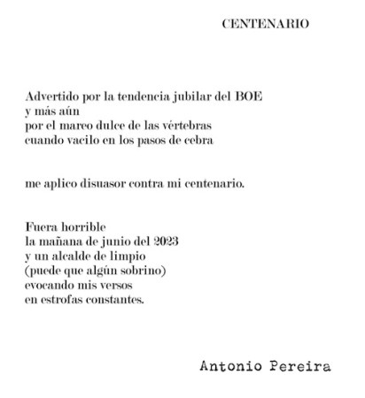 En 2023 se celebrará el centenario del nacimiento del poeta y narrador Antonio Pereira (Villafranca del Bierzo, 1923 – León, 2009). Para conmemorarlo, la Fundación Antonio Pereira ha convocado el Premio Internacional de Ensayo ‘Úrsula Rodríguez Hesles’ sobre la obra poética, narrativa, periodística o biográfica de Antonio Pereira. Dotado con 25.000 euros, el premio servirá también para recordar a la inseparable compañera del autor villafranquino.