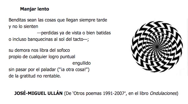 El poeta, periodista, editor, artista e ilustrador José-Miguel Ullán falleció el 23 de mayo de 2009. Aún estaba reciente la publicación en 2008 de ‘Ondulaciones. Poesía reunida (1968-2007)’ (Barcelona, Círculo de Lectores / Galaxia Gutenberg), cuya difusión permitió recuperar aquellos de sus libros que ya no circulaban e hizo sentir el impacto de su palabra a muchos lectores que la encontraban por primera vez.