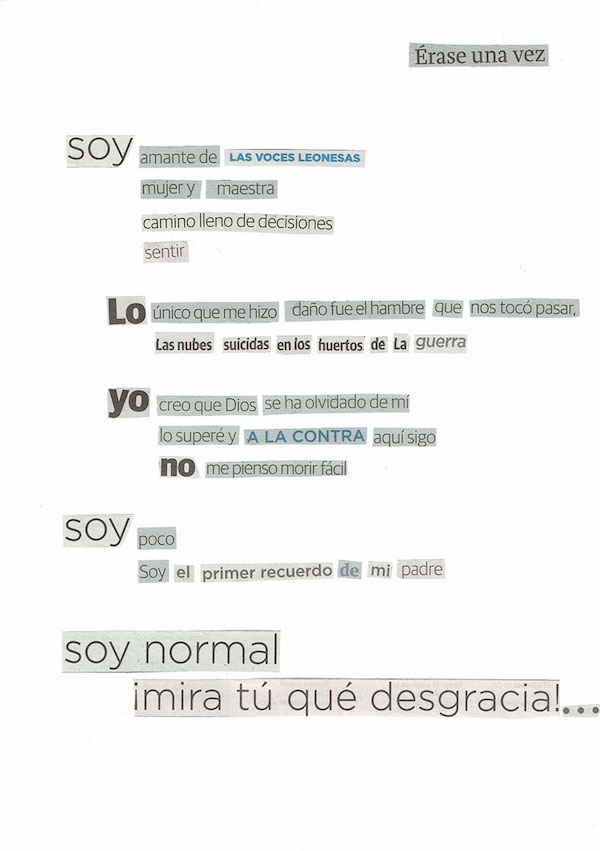 I Concurso de Poesía hecha con titulares de periódico. Finalista 10/16 6 de abril de 2021 Return to: El I Concurso de Poesía hecha con titulares de periódico ya tiene 16 obras finalistasMáxima resolución (600 × 851) Image navigation Previous Image Siguiente imagen Lema: Miguel