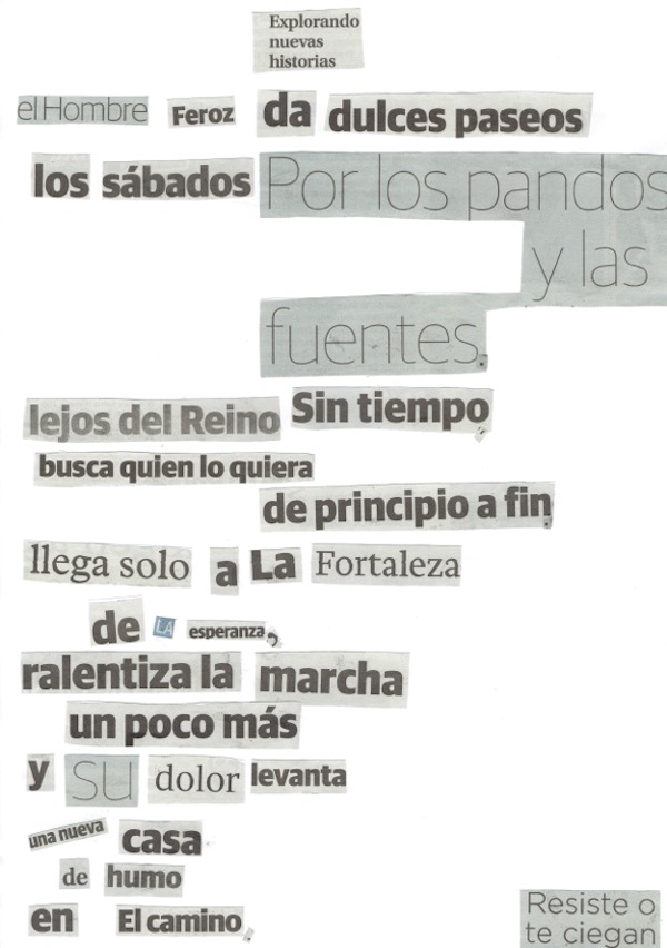 I Concurso de Poesía hecha con titulares de periódico. Finalista 7/16 3 de abril de 2021 Return to: El I Concurso de Poesía hecha con titulares de periódico ya tiene 16 obras finalistasMáxima resolución (600 × 852) Image navigation Previous Image Siguiente imagen Lema: Paipérez