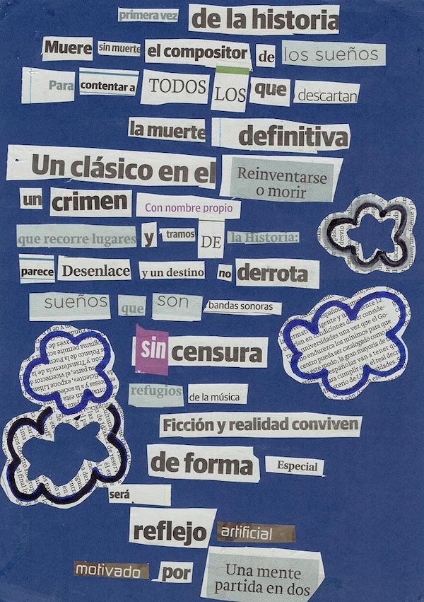I Concurso de Poesía hecha con titulares de periódico. Finalista 13/16 9 de abril de 2021 Return to: El I Concurso de Poesía hecha con titulares de periódico ya tiene 16 obras finalistasMáxima resolución (600 × 851) Image navigation Previous Image Siguiente imagen Lema: Pseudónimo
