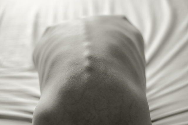 Las fotografías que componen esta serie formada por diez piezas, todas ellas tomadas en su domicilio familiar, tienen como modelos a la propia artista y a sus hijos, tratados como asegura “con mucho cariño y respeto”. “La casa estaba en plena restauración y en ese espacio casi vacío, en el pasillo y en el baño, capté las imágenes que se exponen. Algunas son autorretratos y otras muestran a mis hijos. El elemento humano aporta una gran potencia a la imagen, tanto por su ausencia como por su presencia, y en este caso ha primado la piel, lo que trasciende a la piel: el miedo, y por eso está tratado desde el desnudo”.