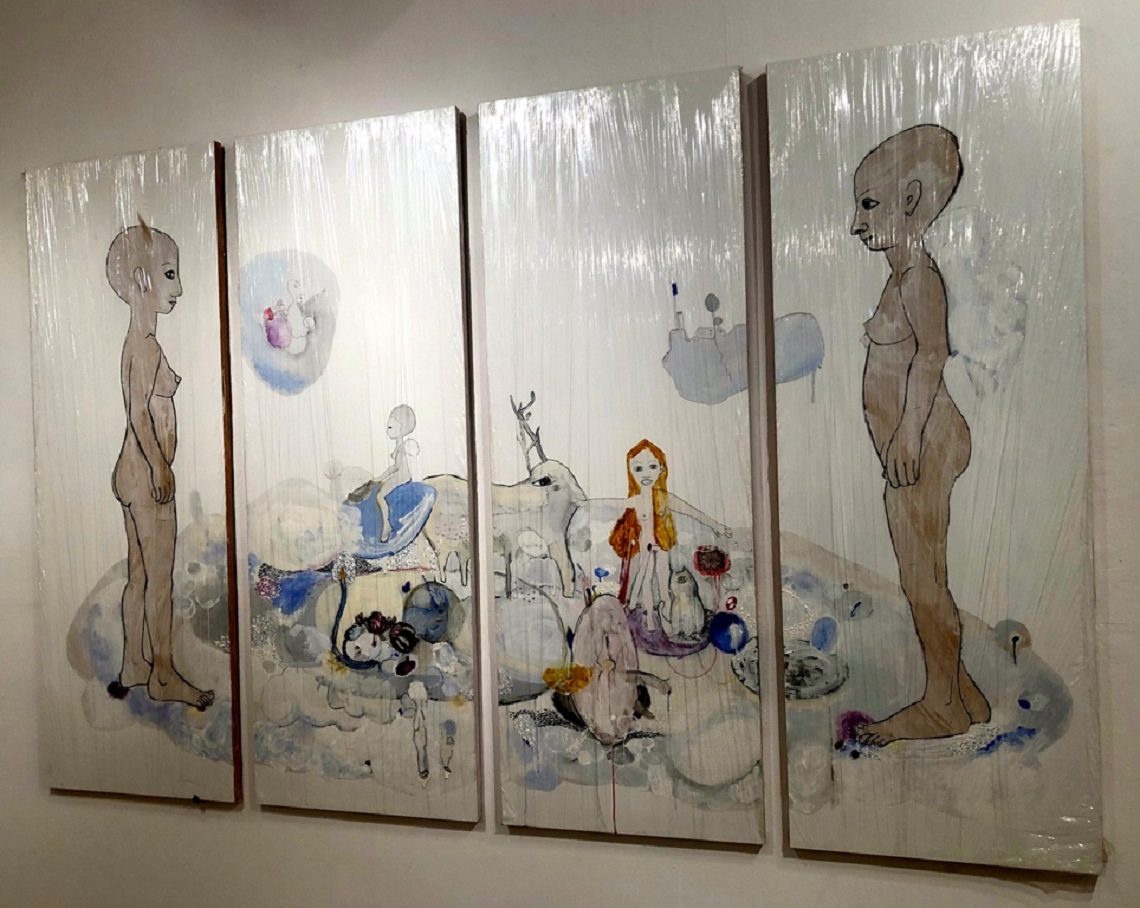En “Dejar aparecer” la artista presenta dibujos, pintura, escultura, collage, elementos textiles, y un vídeo, realizados entre 2006 y 2021, que ponen el foco en la mujer y su importante papel en la sociedad. Y aunque en este recorrido por su obra se encuentra actividad específica del mundo femenino, tiene que ver con la reivindicación de la mujer en el territorio.