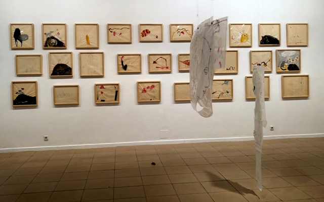 La exposición se distribuye en tres espacios diferentes de la Sala Provincia. Arranca el trayecto con las obras ‘Carpeta negra’ -formada por una serie de 55 dibujos sobre papel producto de una catarsis creadora-, y ‘Gestación’, un diario visual en el que fue recogiendo los dibujos que se exhiben en la exposición, en los que reflexiona sobre cómo el inconsciente individual se va mezclando con el inconsciente colectivo y aparece ante el consciente cuando es necesario, Y eso es lo que se refleja en la instalación ‘Dejar aparecer’.