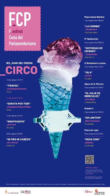 El circo llega esta semana al Festival Cuna del Parlamentarismo, la programación veraniega diseñada por la Concejalía de Acción y Promoción Cultural del Ayuntamiento de León. Serán diez espectáculos repartidos en dos ciclos: del jueves 26 al domingo 29 de agosto y del sábado 4 al domingo 5 de septiembre. Tendrán como escenario el patio del Instituto Juan de la Enzina y comenzarán a partir de las 21:30 horas. La entrada para todas las actuaciones es gratuita.