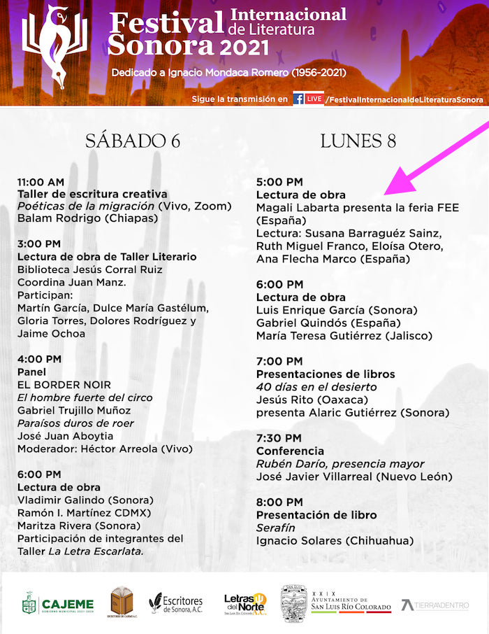 Sonora lunes 8 fee 5 de noviembre de 2021 Return to: Escritoras leonesas en el Festival SONORA (México)Máxima resolución (700 × 906) Image navigation Siguiente imagen