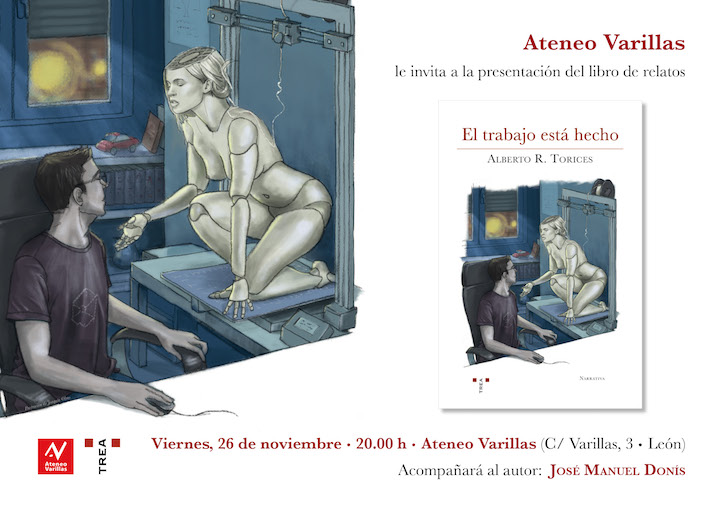 Este viernes 26 de noviembre de 2021, el Ateneo Varillas acogerá la presentación del libro de relatos «El trabajo está hecho» (Ed. Trea), del escritor leonés nacido en Gernika Alberto R. Torices. El autor estará acompañado por José Manuel Donis.